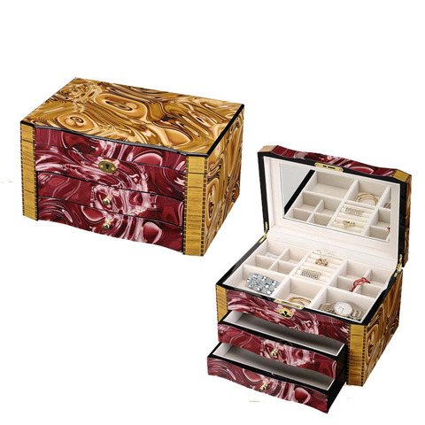 תיבת תכשיטים מעץ סיים עם מגש נשלף